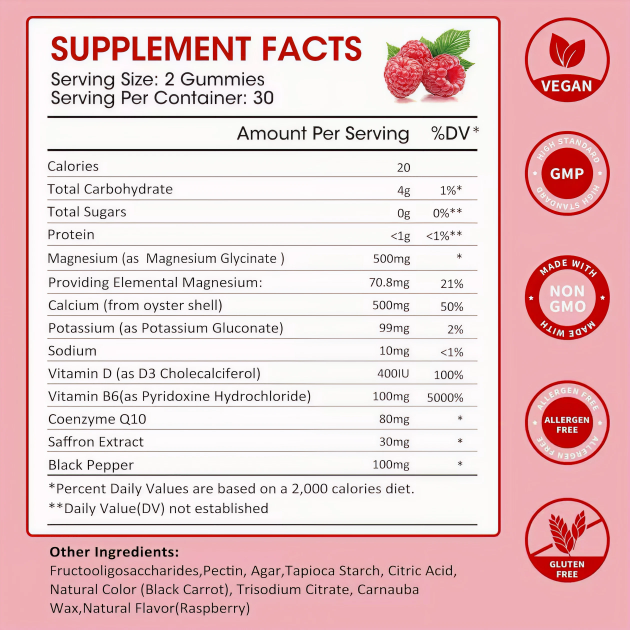 Las Gomas de Glicinato de Magnesio son un suplemento delicioso y efectivo, diseñado para relajar los músculos, mejorar la calidad del sueño y apoyar la función cognitiva. Cada gomita contiene 500mg de magnesio glicinato – forma de alta absorción – combinado con vitamina B6 y D3 para maximizar sus beneficios.